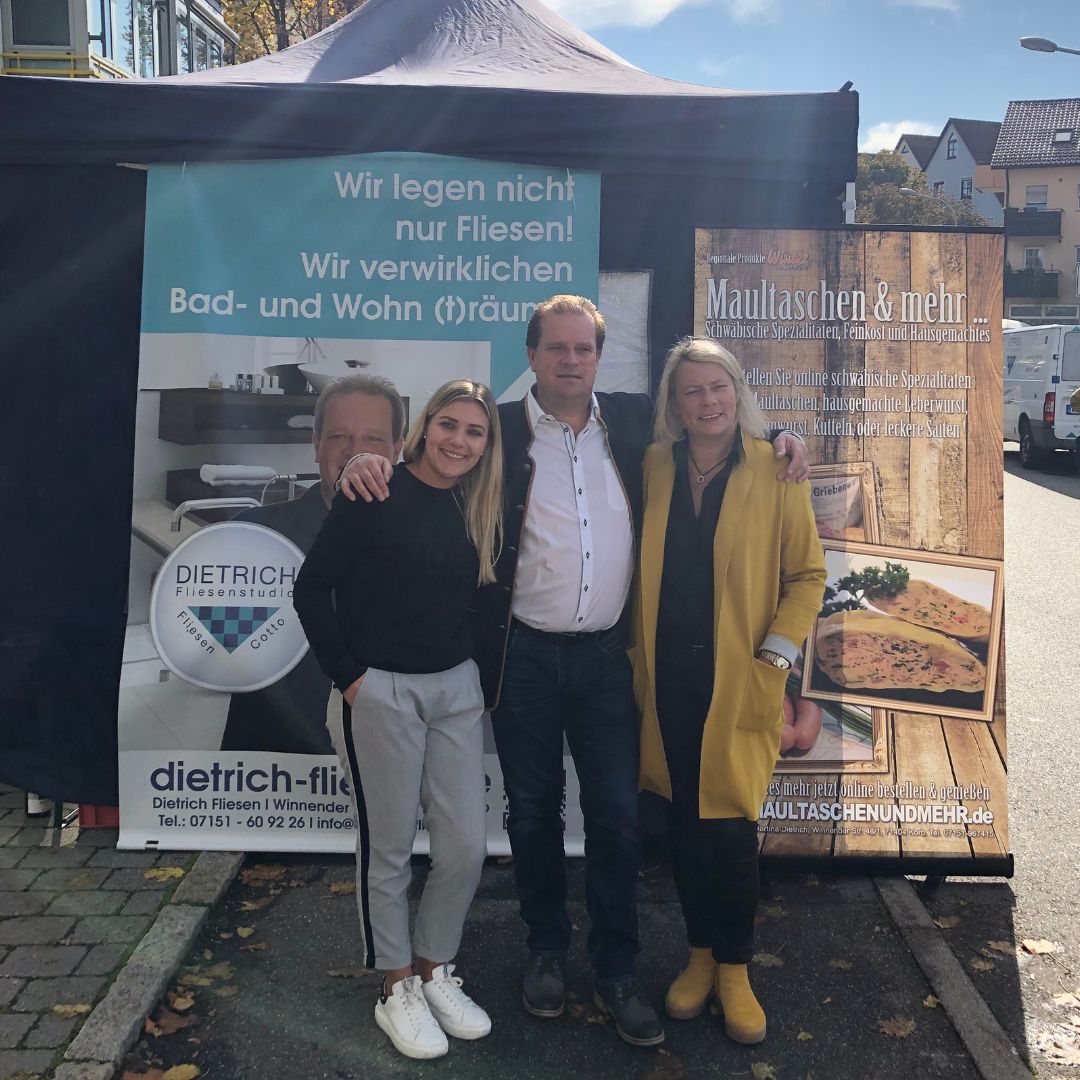 Unser Familienbetrieb "Maultaschen und Mehr" wird mit viel Liebe und Engagement von der Familie Dietrich geführt. Neben erstklassigem Catering bieten wir in unserem Online-Shop eine Vielzahl regionaler Produkte an. Zusammen bringen Martina, Marko und Jenny ihre individuellen Stärken ein, um Ihnen diese besonderen schwäbischen Spezialitäten zu bieten.